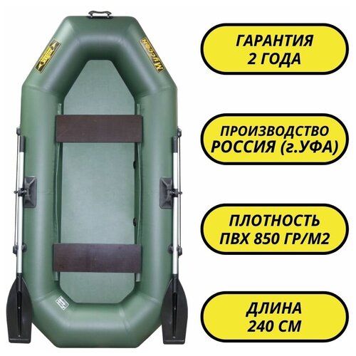 Лодка ПВХ надувная для рыбалки гребная Муссон S-240 (Цвет: Зелёный)