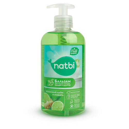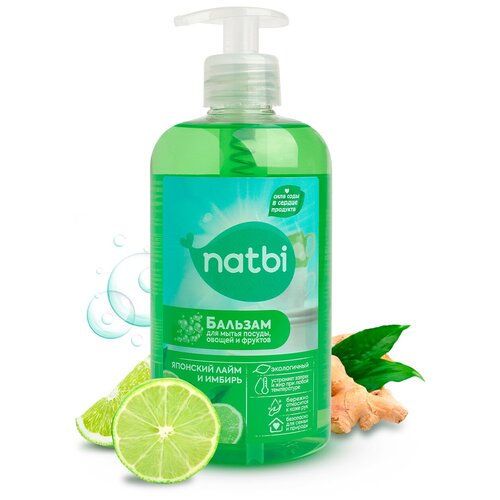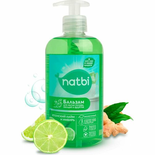 Бальзам для мытья посуды овощей и фруктов Natbi японский лайм и имбирь, 500 мл