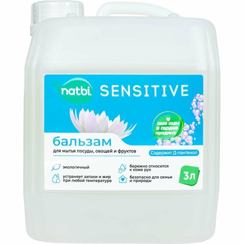 Бальзам гель для мытья посуды фруктов и овощей на основе соды natbi Сенситив, бесфосфатное экологичное средство.