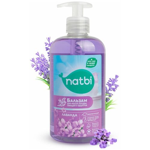 Бальзам гель для мытья посуды фруктов и овощей на основе соды natbi Лаванда, бесфосфатное экологичное средство.