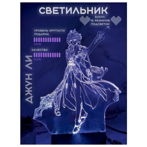 Nekosay, 3D Светильник-ночник аниме Genshin Impact, Джун Ли (Чжун Ли)