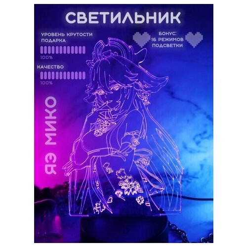 Nekosay, 3D Светильник-ночник аниме, Genshin Impact, Яэ Мико