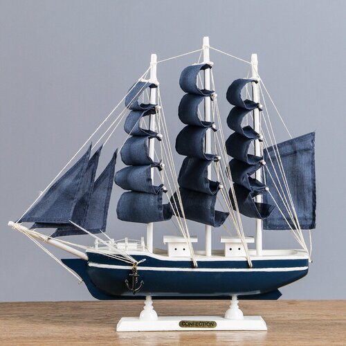 Корабль сувенирный средний «Калева», борта синие с белой полосой, паруса синие, 30х7х32 см