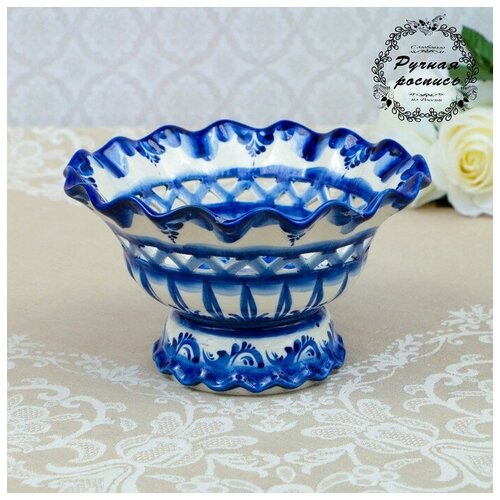 Конфетница "Волна", гжель, фарфор, 10х20 см
