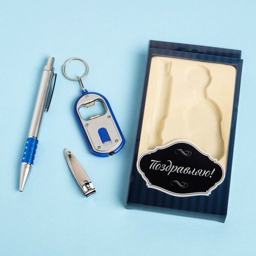 Набор подарочный 3в1 (ручка, кусачки, брелок-открывалка с фонариком) микс