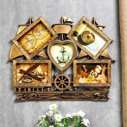 Фоторамка пластик на 5 фото 10х15, 12х12 см "Корабль" тёмное золото 38х48 см