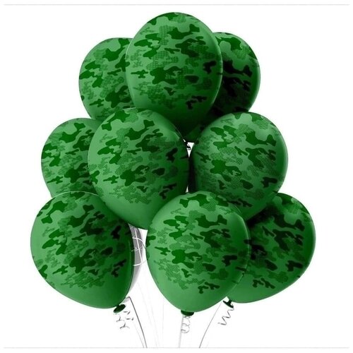 Воздушные шары, хаки, камуфляж, диаметр 30 см, 10шт.