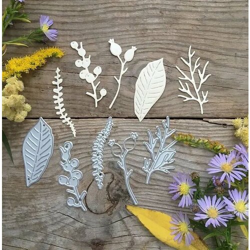 Набор Mini Ножей для вырубки, Шиповник и листья, материал сталь, размер высота 4 см, 5 ножей Нож для вырубки