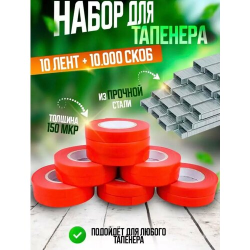 Лента для подвязки 38м. 140 мкр. 10 штук + скобы 10.000шт