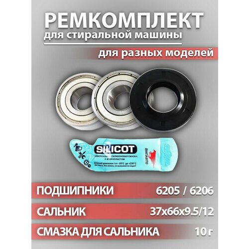 Ремкомплект бака стиральной машины (подшипники NTL 6205-ZZ, 6206-ZZ; сальник 37x66x9.5/12; смазка 10г)