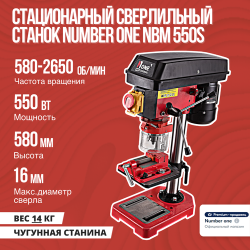 Сверлильный станок стационарный NUMBER ONE NBM 550S (550Вт,5 скоростей,13мм,580-2650об/мин,16кг)+тиски,№1