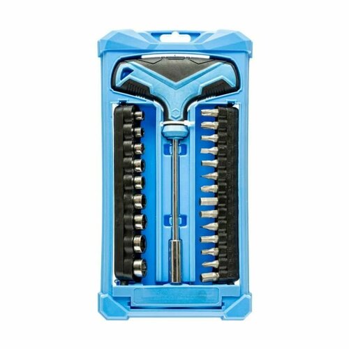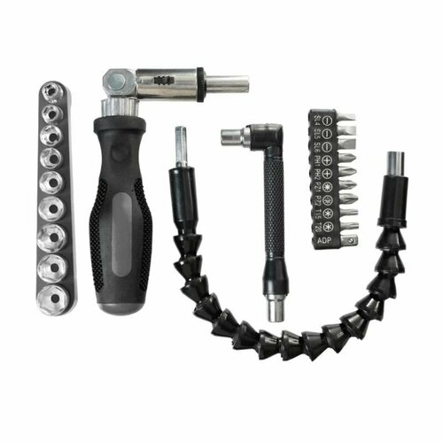 Набор бит и торцевых головок с рукояткой 24 предмета для ремонтных работ дома или на даче.