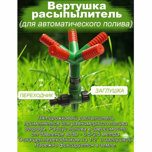 Разбрызгиватель/распылитель садовый для полива, 5 рожков с коннектором 1/2