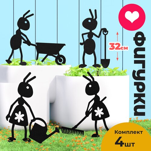 Cадовые фигурки для дачи " Муравьи" большие 4 шт , садовый декор OST GARDEN 32 см
