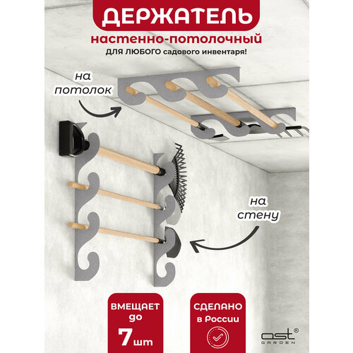 Держатель настенный садовый для лопат, граблей и других хозяйственных и садовых инструментов OST GARDEN