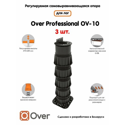 Регулируемая опора для лаг OVER OV-10 (373-628мм) (с вершиной)-3шт