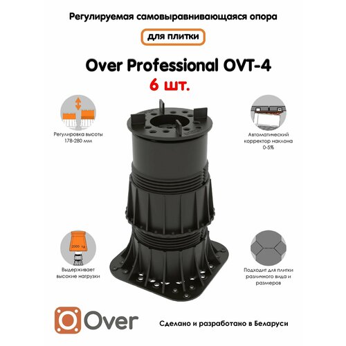 Регулируемая опора для плитки OVER OVT-4 (178-280 мм) (с вершиной)-6шт