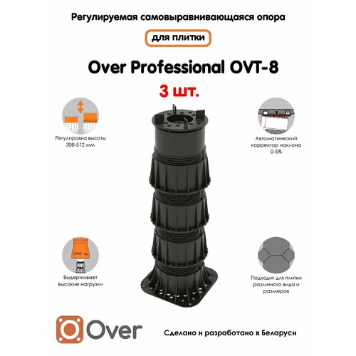 Регулируемая опора для плитки OVER OVT-8 (308-512 мм) (с вершиной)-3шт