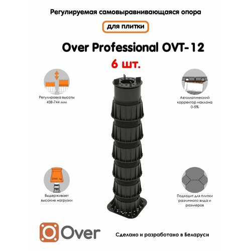 Регулируемая опора для плитки OVER OVT-12 (438-744 мм) (с вершиной)-6шт