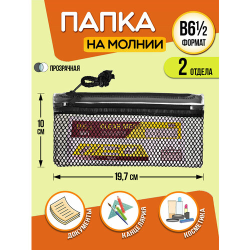 Папка для канцелярии / Кейс защитный на молнии 19,7х10х0,5 см черный