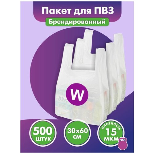 Пакет майка 30х60 см 500 штук. Логотип "W". Пакет большой полиэтиленовый.