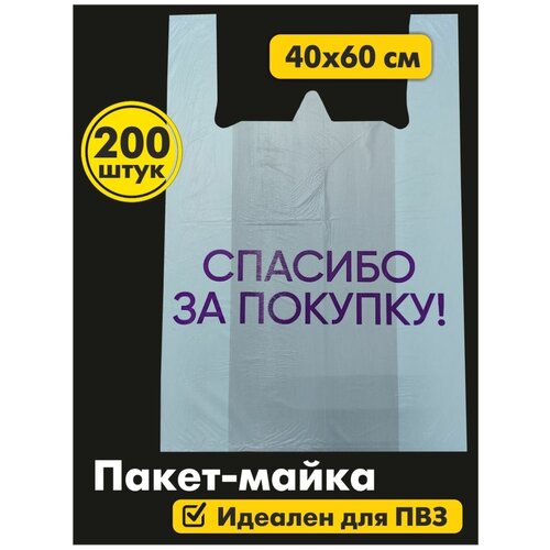 Пакет майка 40х60 для ПВЗ большой 200 шт. Спасибо за покупку.