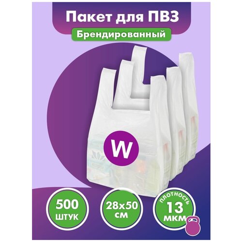 Пакет майка 28х50 см 500 штук. Логотип "W". Пакет большой полиэтиленовый.
