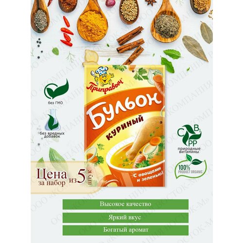 Бульон Куриный с овощами и зеленью 5 шт. по 75 г, Приправыч