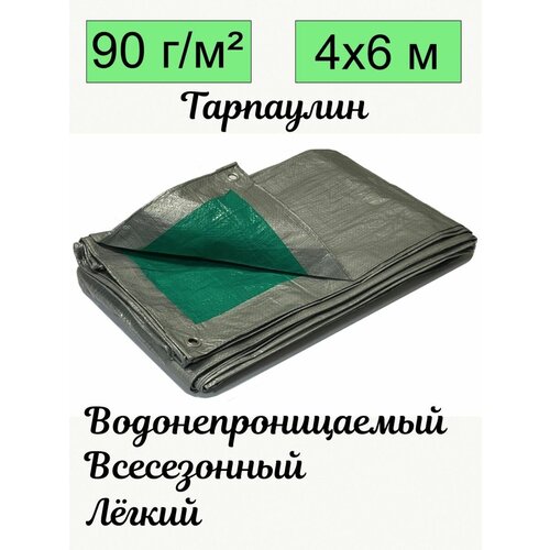 Тент брезент тарпаулин универсальный 4х6 метра плотность 90 гр/м2 с люверсами всесезонный водонепроницаемый строительный