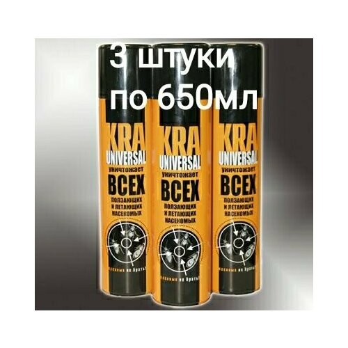 Дихлофос KRA UNIVERSAL 3 штуки по 650мл уничтожает всех ползающих и летающих насекомых.