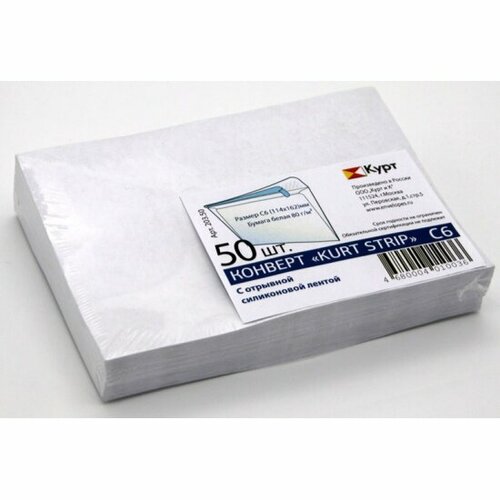 Конверт бюрократ 203.50 C6 114x162мм белый силиконовая лента 80г/м2 (pack:50pcs)