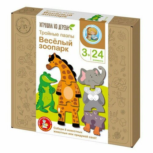 Тройные пазлы «Весёлый зоопарк» 24 эл.