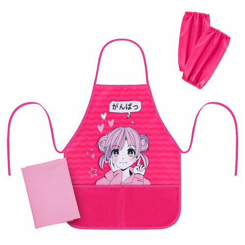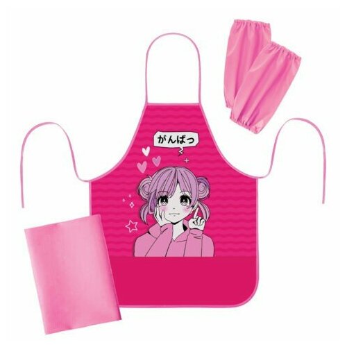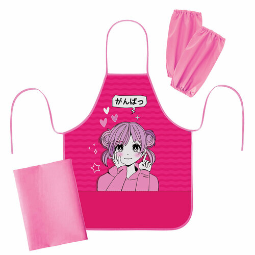 Набор для уроков труда BRAUBERG KIDS, клеенка ПВХ, накидка фартук с нарукавниками, "Anime style", 272362