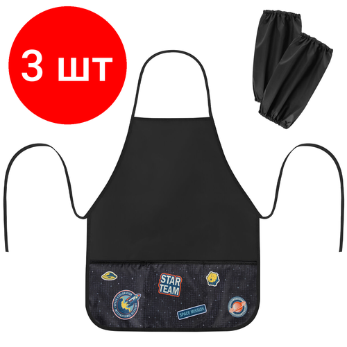 Комплект 3 шт, Фартук с нарукавниками для уроков труда BRAUBERG, 3 кармана, 45x54 см, "Space Mission", 271636