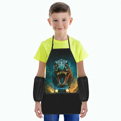 Упаковка 3 шт. Накидка фартук с нарукавниками для труда BRAUBERG KIDS, 2 кармана, 46x54 см, "Dino chase", 272454