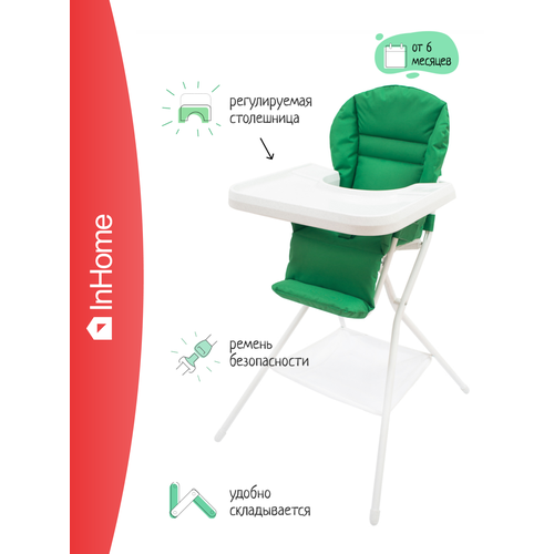 Стульчик для кормления InHome IN03, белый-зеленый