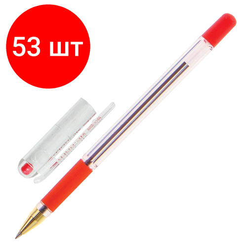 Комплект 53 шт, Ручка шариковая масляная с грипом MUNHWA "MC Gold", красная, корпус прозрачный, узел 0.5 мм, линия письма 0.3 мм, BMC-03