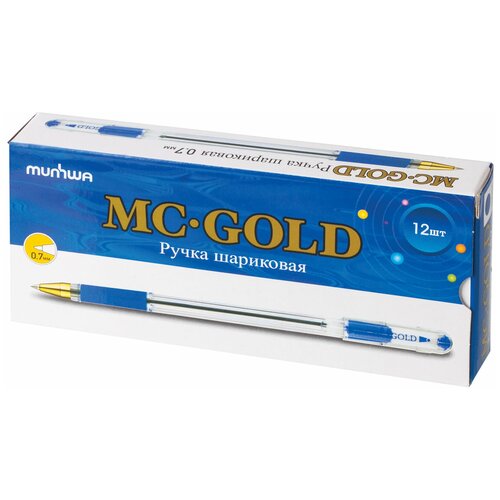 MunHwa MC Gold 0,7 синяя. Набор шариковых ручек 12 шт. (ручка шариковая) MC Gold синяя, грип, BMC07-02