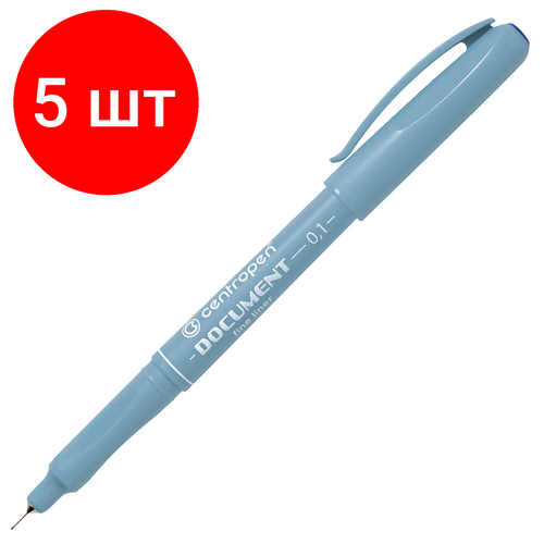 Комплект 5 шт, Ручка капиллярная (линер) синяя CENTROPEN "Document", трехгранная, линия письма 0.1 мм, 2631/0.1, 2 2631 0110