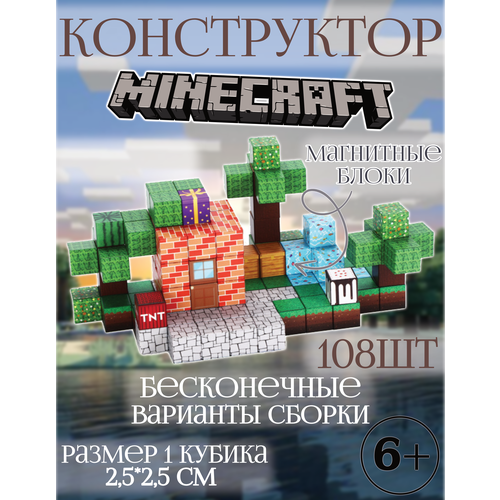 Конструктор детский майнкрафт магнитные блоки 610-108шт сад