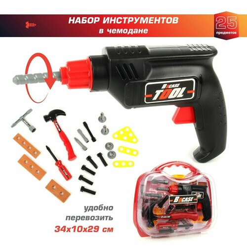 Игровой набор инструментов для мальчиков 25 предметов, Veld Co / Чемодан ящик с инструментами для детей / Шуроповерт, молоток, отвертка