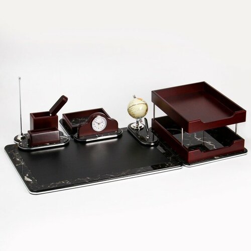 Набор настольный 7в1 с визитницей и часами, черное дерево 511394