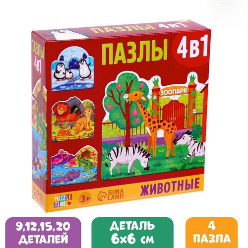 Фигурные пазлы 4 в 1 "Животные", 9, 12, 15, 20 элементов 7403720