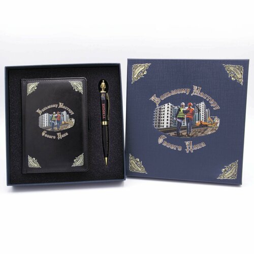 Подарочная ручка "Строитель" в футляре, гравировка, черная
