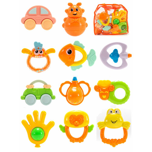Большой набор игрушек с боксом для хранения-отличный подарок для новорожденных. В наборе 9 погремушек и 3 прорезывателя с резиновым...