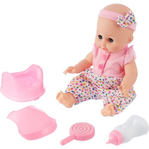 В наборе с пупсом есть бутылочка.-Цвета микс: да-Вес: 109 г.-Звук: Да-Подсветка: есть-Фасовка: 1 шт-Тип индивидуальной упаковки: Пакет-Длина упаковки: 16-Высота упаковки: 24-Ширина упаковки: 8-Объем упаковки: 3.072-Объем продукта: 1.42-Объем бокса: 153.36-Ширина: 7-Высота: 22-Габариты товара: 14 см × 7 см × 22 см-Материал: Пластик-Высота, см: 22-Возраст: От 3 лет-Количество батареек: 2-Вид упаковки: Пакет-Вид: Пупс-Свет: Да-Особенности куклы: Звуковые функции-Типоразмер батареек: LR44 (V13GA, AG13, LR1154, SR44)-Батарейки в комп
