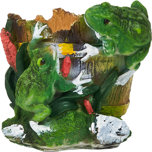 Фигура садовая Лягушата на кадке искусственный камень 18х15х12 см