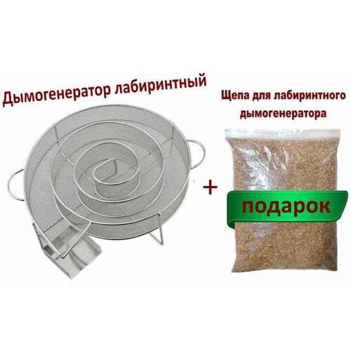 Дымогенератор лабиринтный круглый (пассивный) для копчения + щепа в подарок
