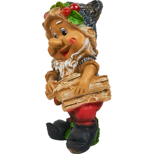Фигура садовая Гном с охапкой дров искусственный камень 39х22 см