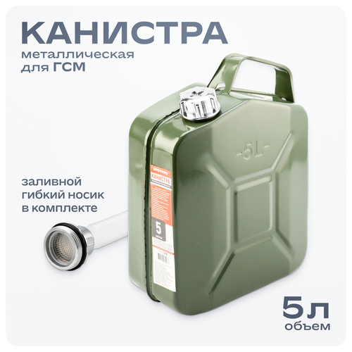 Канистра для бензина 5 литров металлическая с носиком, S02601010